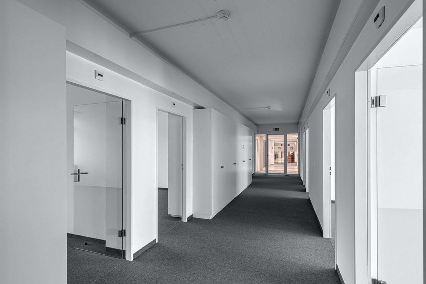 Die Raumaufteilung ermöglicht sowohl konzentriertes Arbeiten in Einzelbüros als auch eine flexible Nutzung für Teams oder kombinierte Arbeitsformen.
