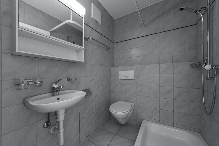 Nasszelle mit Badewanne und WC