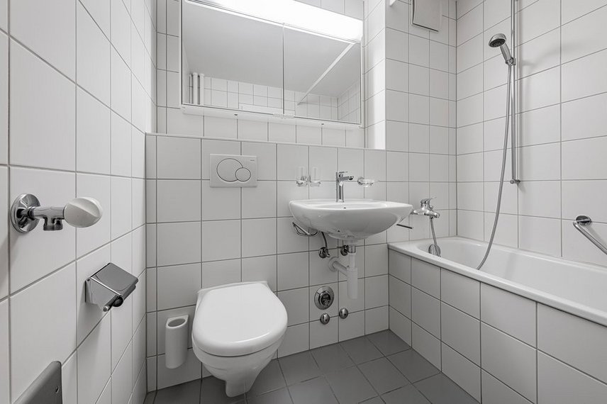 Nasszelle mit Badewanne, WC und optionalem Waschmaschinenanschluss